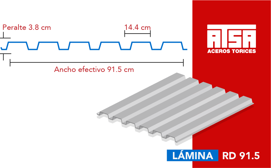 ≡ Nuestra lámina 91.5 cuenta con un peralte de 3.81 cm (1.5″) y un poder cubriente de 91.44 cm (36″).